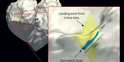 Ученым удалось ограничить территорию поисков зонда Philae на комете 67P/Чурюмова-Герасименко. Специалистам европейского космического агентства (ЕКА) при помощи научного инструмента CONSERT космического аппарата Rosetta удалось уменьшить область поисков Philae площадкой размером 350 на 30 метров.