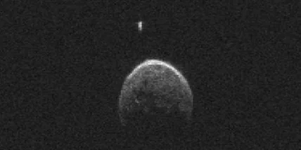 Изображения получены при помощи радиолокационной антенны Deep Space Network обсерватории Голдстоун в Калифорнии. Оно показывает момент максимального сближения астероида с Землей, когда объект пролетал перед Луной.