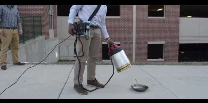 Студенты Университета Джорджа Мейсона сконструировали аппарат на собственные деньги (около 600 долларов). Он состоит из собственно огнетушителя и рюкзака с элементами питания. Сначала студенты экспериментировали с большими колонками и высокими частотами, но в итоге лучший результат показали басы: частота в 30-60 герц.
