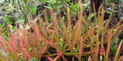 "Большая росянка" может достигать 1,5 м в высоту, а листья ее покрыты волосками, выделяющими липкий секрет для массовой ловли насекомых.