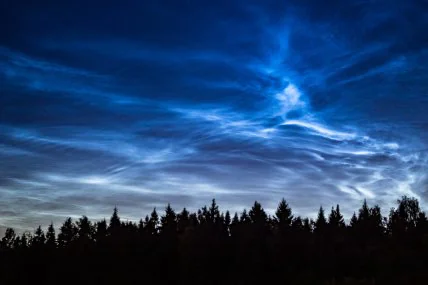 Серебристые или полярные мезосферные облака — это редкое природное явление. Облака напоминают перья и имеют синеватый или серебристый цвет. Уникальность их в том, что они хорошо видны в ночном небе после заката солнца поскольку находятся в мезосфере (на высоте 80 км над поверхностью Земли).