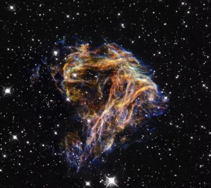 В ведомстве отмечают, что эти яркие линии и узоры являются остатками некогда массивной звезды, которая превратилась в сверхновую и завершила существование.