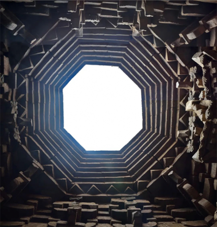 Выходящая на юг гробница имеет сходство с другими подобными объектами, найденными регионе. Погребальное сооружение состоит из "могильной дороги" к лестнице, ведущей вниз к двери во внутреннюю камеру, которая представляет собой квадрат длиной около 2 метров с каждой стороны, под сложным восьмиугольным шпилем из ступенчатых кирпичей.