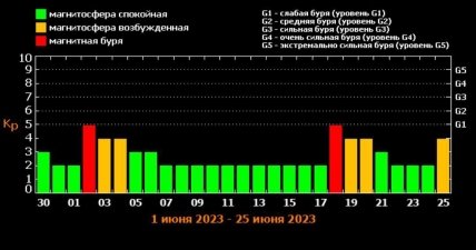 После того, через 4 дня, прогнозируется магнитное возмущение мощностью 4 балла – 25 июня.