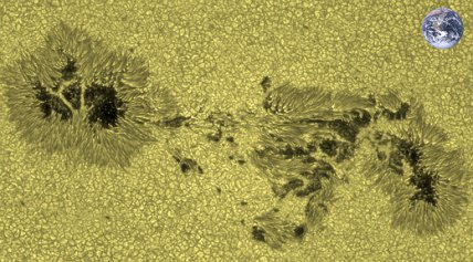 Растущее солнечное пятно AR3311 теперь в 10 раз шире Земли и теперь его можно называть "Бегемотом".