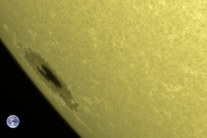 Солнечное пятно настолько велико, что его можно увидеть с Марса