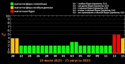 Между тем сайт Tesis.xras напоминает об обновленном графике магнитных бурь в течение июля и августа.