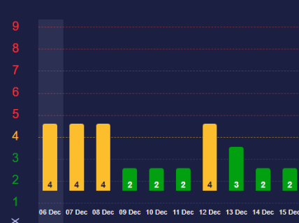 Между тем, ученые с сайта Meteoagent обновили и обнародовали график геомагнитных штормов в течение первой части декабря.