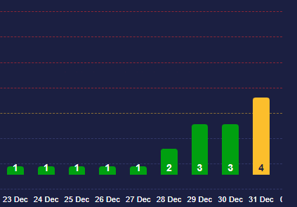 И последний день этого месяца, 31 декабря, принесет с собой еще одно небольшое возмущение 4 баллов.