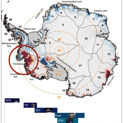 Исследователи обнаружили нетипичное горячее ядро в районе ледников Pine Island и Thwaites