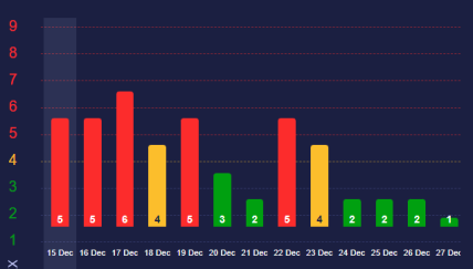 Такое мнение имеют и астросиноптики с сайта Meteoagent. Они обновили и обнародовали график магнитных колебаний в декабре.