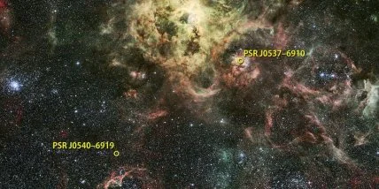 Пульсар PSR J0540-6919 находится в 163 тысяч световых лет от Земли.