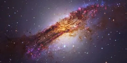 Галактика Центавр А, известная также под обозначением NGC 5128, действительно фотогеничный объект. На этом снимке вы можете разглядеть молодые голубые звездные скопления, окаймляющие Центавр А, розоватые области, где протекают активные процессы звездообразования, и внушительных размеров темные пылевые полосы поверх розово-голубых областей.