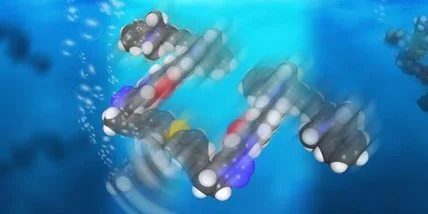 Воздействие ультрафиолетового излучения заставляет похожую на угловатый штопор молекулу вращаться как жгутик бактерии, и за каждый полный оборот преодолевать расстояние в 18 нм. Происходит это за счет быстрого "переключения" между двойной и одинарной связью в одной из частей молекулы. При этом меняется и ее геометрия, заставляя "субмарину" вращаться, буквально "ввинчиваясь" в воду.