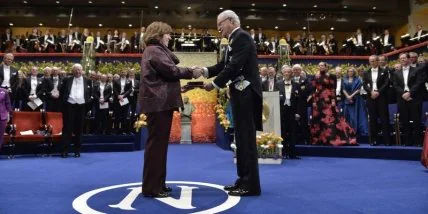 Торжественная церемония вручения Нобелевской премии по традиции проходит 10 декабря, в день смерти основателя премии Альфреда Нобеля, шведского изобретателя и промышленника. Церемония вручения  прошла и Стокгольме. Почетные дипломы и золотые медали лауреаты получили из рук короля Швеции Карла ХVI Густава.