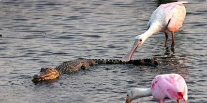 В новой истории отношений, описанной американскими экологами, все немного не так, и определенную выгоду из этих отношений извлекают обе стороны. "Известно, что иногда ибисы, аисты и цапли (обитающие на болотах флоридского национального парка Эверглейдс - NS) гнездятся прямо над аллигаторами, - говорит один из авторов новой работы Питер Фредерик (Peter Frederick). - Аллигаторы выступают защитниками кладки, так что птицам не угрожают еноты, которые являются чрезвычайно опасными для гнезд хищниками".