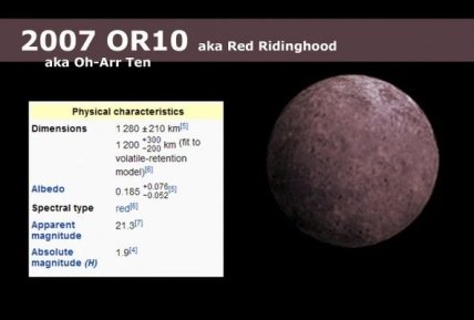 Об открытии 2007 OR10 астрономы рапортовали в 2009 году. Поначалу его занесли в десятку крупнейших транснептуновых объектов, а сейчас, похоже, ожидается повышение в статусе.
