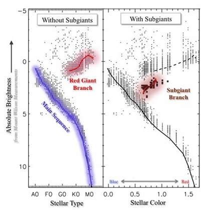 Как показали исследования Сэндиджа и его коллег, Гамов и Адамс правильно указали место субгигантов на диаграмме. Для этого астрономы использовали данные каталога обсерватории Маунт-Вильсон, в котором к 1935 году насчитывалось около 90 субгигантов.