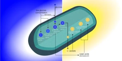 Поскольку гиперэкспрессированными оказались также ряд генов (gadE), связанных с уровнем pH, исследователи попытались выяснить источник их гиперэкспрессии. Дело в том, что pH маркирует только кислотно-щелочной баланс раствора, но не всей окружающей среды. Однако показатель pH в растворах, которые использовались на Земле и на борту МКС, был идентичен. Это позволило предположить, что на бактерии влияла именно высокая кислотность в условиях микрогравитации.