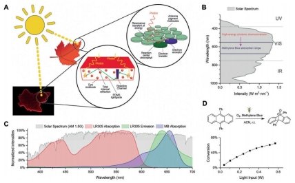 В новой работе ученые из Технического университета Эйндховена использовали LCSs (в форме листьев), которые были легированы флуоресцентным красителем полидиметилсилоксаном. Поверхность объекта включала в себя сеть микроканалов для ввода жидкости с нужными химическими веществами, и под действием солнечного света молекулы вступали в реакцию. Таким образом, устройство повторяло принцип работы антенн фотосинтезирующих организмов.
