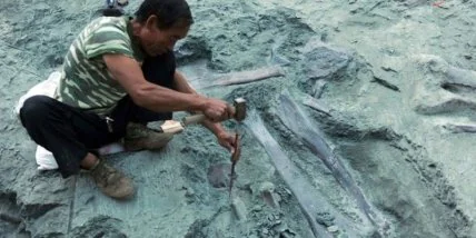Во время проведения раскопок коллектив ученых из Китайского научно-технического университета нашел в провинции Юньнань окаменевшие кости беременного динозавра возрастом более 245 миллионов лет. Эксперты утверждают, что они принадлежали старой пресмыкающейся рептилии - диноцефалозавру. Его отличительная черта - большая шея, длина которой составляет около двух метров.