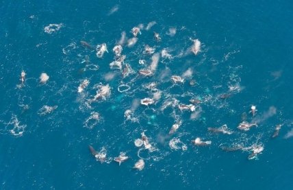 Международная группа ученых обнаружила необъяснимую склонность горбатых к собранию большими группами, когда обычно они плавают парами или в одиночку.