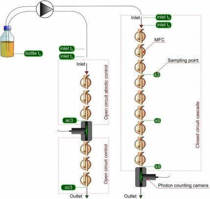 Микробные топливные элементы состоят из трех компонентов: катодной и анодной камер и разделяющей их мембраны. В анодной камере в анаэробных условиях находятся микроорганизмы, которые «отрывают» электроны от поступающего материала и передают их на анод. Там же формируются протоны водорода, которые поступают в катодную камеру через мембрану.