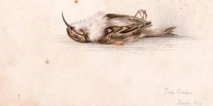 Акварель нашли среди пингвиньего помета, пыли и плесени. На ней сохранилось название рода птиц Tree Creeper — пищуха и дата — 1899 год. Судя по дате, Уилсон нарисовал птицу в Европе, когда лечился от туберкулеза.