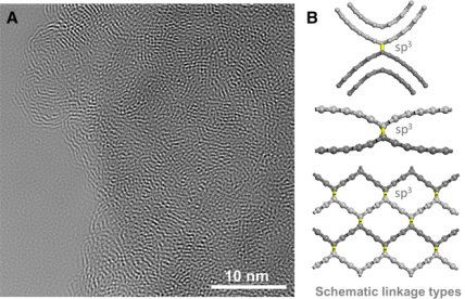 Чтобы изменить кристаллическую решетку, образцы стеклоуглерода нагревали до 1100 градусов Цельсия и подвергали давлению в размере до 25 гигапаскаль (порядка 247 тысяч атмосфер). Последующий анализ показал, что при определенных условиях материал приобретал графеноподобную форму, при этом некоторые орбитали в ней имели sp3-гибридизацию. Число таких атомов достигало 22±5, возрастая с повышением температуры. На небольших масштабах просвечивающая электронная микроскопия (ПЭМ) позволяла наблюдать в конечной структуре sp3-гибридизированные области, «сшивающие» листы графена. Тем не менее, в масштабах целого образца она была неупорадочена.
