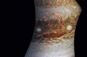 Гражданский ученый Джейсон Мэр с помощью снимков, сделанных аппаратом "Юнона", создал изображение, на котором можно увидеть "лицо" Юпитера. Снимок был опубликован на сайте NASA.