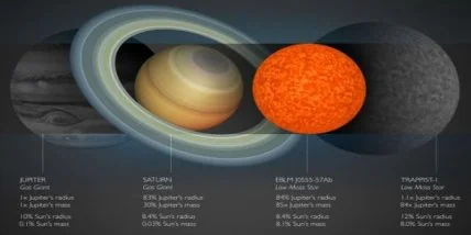 Ученые-астрономы из Кембриджского университета обнаружили звезду, размер которой ненамного превышает размер Сатурна, что делает эту звезду, EBLM J0555-57Ab, самой маленькой из всех звезд, известных современной науке.