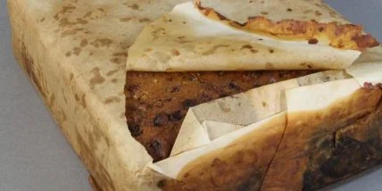Фруктовый кекс не утратил "лицо" и выглядел так, будто его только сняли с полки британской кондитерской фирмы Huntley & Palmers. Хоть, по словам сотрудников фонда, оловянная коробка, в которой лежал десерт, была в довольно плохом состоянии, сам пирог выглядел и пах "почти как съедобный".