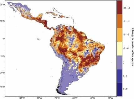 Учитывалось не только воздействие температуры на сами растения, но и состояние пчел, опыляющих некоторые виды кофе. По оценкам ученых, видовое разнообразие пчел Южной Америки может сократиться на 65% территории континента. Лишь на 4–5% земель можно ожидать рост числа видов пчел-опылителей.