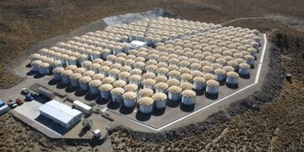 В состав этой обсерватории, расположенной в Мексике, входит множество металлических емкостей, заполненных чистой водой. Когда частицы космических лучей проходят сквозь воду, в ней возникают конусовидные вспышки света, которые появляются из-за разницы скорости движения света в вакууме и в воде за счет так называемого эффекта Черенкова.