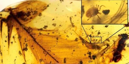 В уникальных образцах янтаря сохранились клещи, которые пили кровь динозавров и жили в их гнездах.