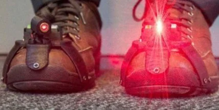 Такую уникальную разработку создали ученые из Университета Твенте. Лазерная обувь благодаря небольшим лазерным излучателям сможет помочь в передвижении людям с болезнью Паркинсона. Как известно, одним из симптомов заболевания является так называемое "замораживание" ходы, в состоянии которого человек становится неспособным сделать шаг, несмотря на желание идти дальше.
