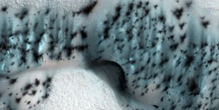 Автоматическая станция Mars Reconnaissance Orbiter прислала на Землю снимки Марса, покрытые снегом углекислого газа.