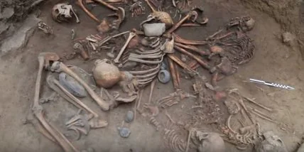 Как полагают археологи, находка, очевидно, связана с ритуальными церемониями того времени. Скелеты принадлежат людям разного возраста, от одномесячного младенца до старика. Голова одного из скелетов покоится на груди другого, руки еще одного скелета прижаты к спине другого. Также исследователи нашли на месте захоронения глиняные горшки и округлые чаши.