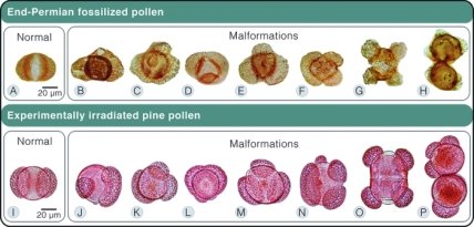 Биологи экспериментировали с растениями сосны, которые сравнительно близки к древним голосеменным, доминировавшим на планете до и после пермского вымирания. Небольшие деревца высотой не более 49 см в течение двух месяцев выращивались под УФ-излучением, интенсивность которого более чем вдесятеро превышает обычный для яркого солнечного дня уровень. Быстрой гибели растений это не вызвало, однако привело к нарушению тонких процессов, управляющих формированием пыльцы, а затем и семян. Неправильные, деформированные шишки гибли через несколько дней после формирования, и дерево становилось стерильным.