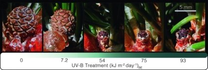 Биологи экспериментировали с растениями сосны, которые сравнительно близки к древним голосеменным, доминировавшим на планете до и после пермского вымирания. Небольшие деревца высотой не более 49 см в течение двух месяцев выращивались под УФ-излучением, интенсивность которого более чем вдесятеро превышает обычный для яркого солнечного дня уровень. Быстрой гибели растений это не вызвало, однако привело к нарушению тонких процессов, управляющих формированием пыльцы, а затем и семян. Неправильные, деформированные шишки гибли через несколько дней после формирования, и дерево становилось стерильным.