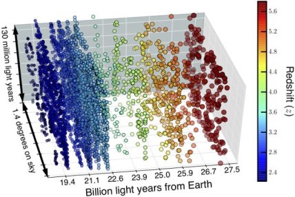 Астрономы построили одну из крупнейших карт молодой Вселенной, которая показывает количество галактик на разных этапах ее существования.