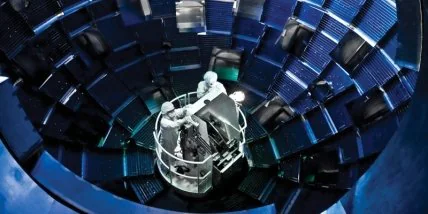 Эксперимент был проведен на печально известной лазерной установке National Ignition Facility. Ученые навели лучи 176 лазеров на железный шарик, диаметром в несколько микрометров, покрытый тонким слоем золота. Лучи лазерного света за 30 миллиардных долей секунды поставили такое количество энергии, что железо сжалось под давлением, превышающим в 14 миллионов раз нормальное атмосферное давление. Во время этого сверхбыстрого сжатия ученые измеряли изменения плотности железа и изменения других параметров этого материала.