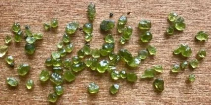 Эти кристаллы — оливины — магнезиально-железистые силикаты. Они настолько распространены на планете, что, по оценкам экспертов, составляют 50% верхней мантии Земли. Во время извержения магма вымывает часть океанической коры, схожей по составу с мантией, поэтому темные магматические породы нередко приобретают зеленый оттенок. Однако в чистом виде оливин, который ювелиры обычно называют перидотом, найти трудно. Еще реже он падает с неба.