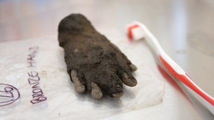Археологи обнаружили недалеко от Вала Адриана на западе Англии загадочную бронзовую руку. Рука, размеры которой напоминают детскую, была найдена археологами во время раскопок древнеримской крепости Виндоланда.
