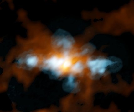 Уникальные наблюдения области звездообразования позволили рассмотреть исходящий от протозвезды поток воды и сахар в окружающем газовом облаке.