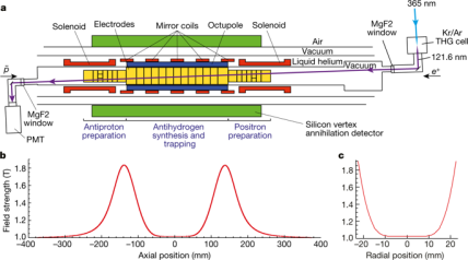 При помощи ALPHA (аппарат для получения антиводорода при помощи лазерного излучения) исследователи соединили антипротоны с позитронами для создания атомов антиводорода.