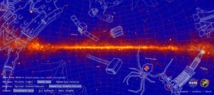 Эта карта показывает объекты, видимые в рентгеновском диапазоне, который человеческий глаз не различает. Навигацию можно осуществлять с помощью мышки или тачпада. Если кликнуть на созвездие, появляется информация о нем.