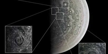 Миссия NASA Juno на газовом гиганте Юпитер достигла середины своего срока эксплуатации и открыла новые виды циклонов на полюсах.