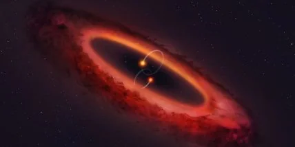 У двойной звезды обнаружили развернутый боком протопланетный диск