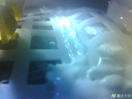Снимок биологического эксперимента, полученный центром управления миссией "Чанъэ-4" седьмого января 2019 года 87 часов спустя после впрыскивания воды, на котором видны ростки хлопчатника